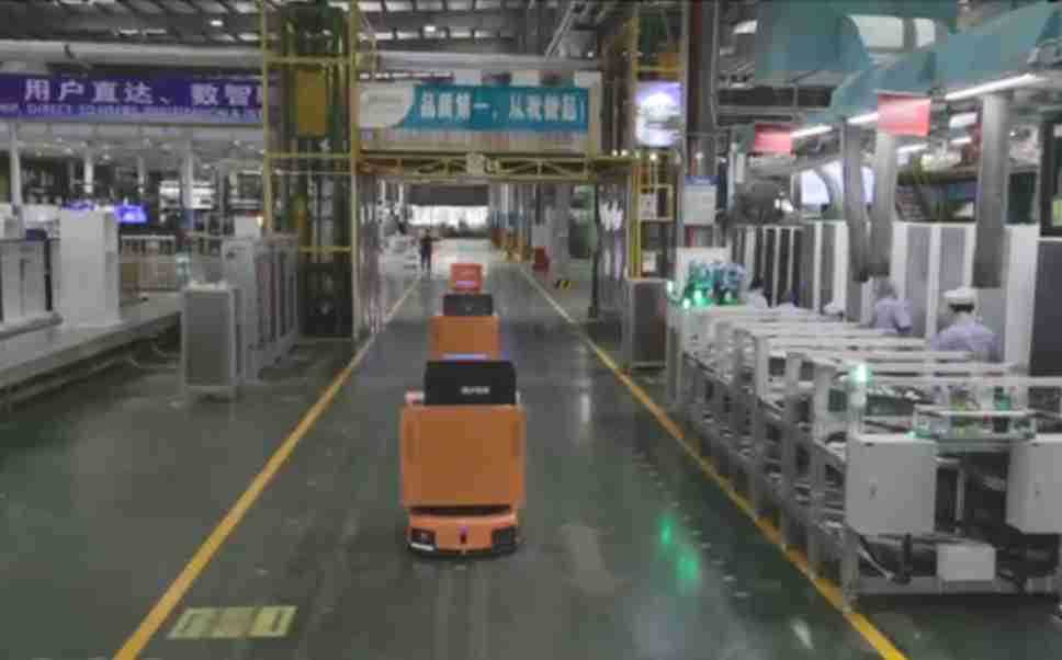 为车载冰箱物流配送打造的智能解决方案,,包含产中物流通过潜伏举升AMR搬运至线边,,产后成品物流智能仓储,,,流程包含产中物流智能齐套入库,,,,线边安灯叫料AMR智能配送至线边,,成品入库、、、、出库,,,,通过无人堆高车机器人,,,,智能仓储管理替代人工作业管理,,实现更高存储、、、更高效率、、、更具柔性化的解决方案。。